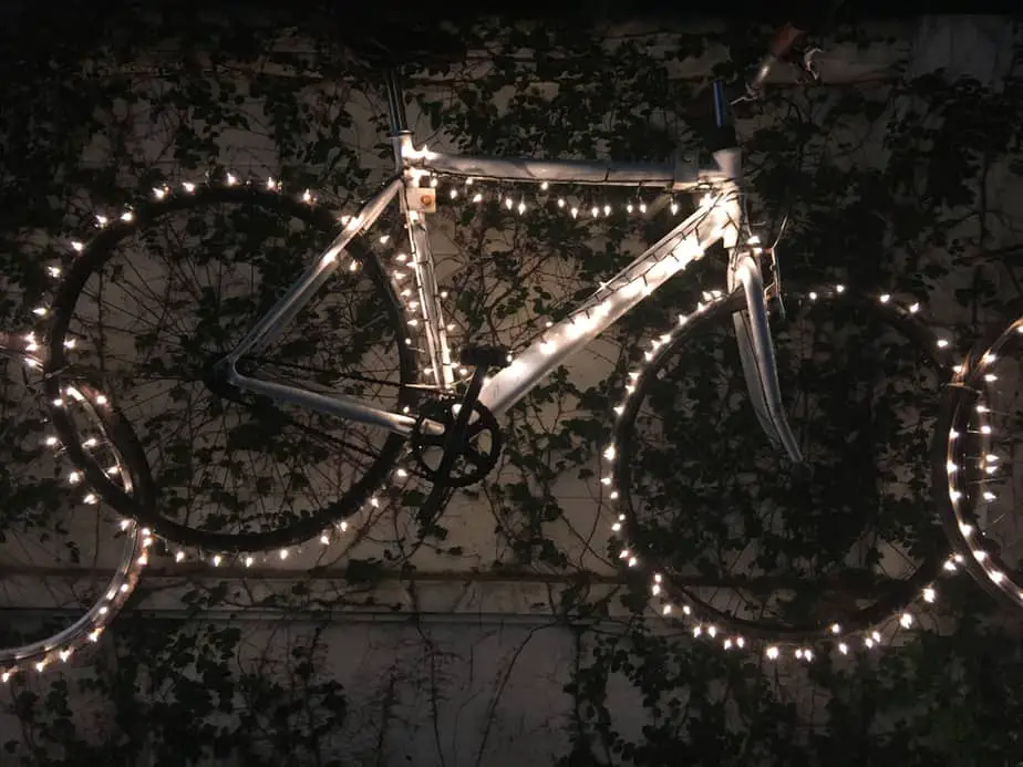 11. Vintage Bicycle Trellis with Lights