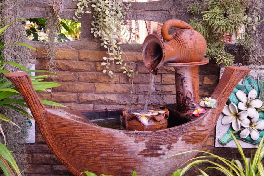 Continuing with the theme of water cascading from artisanal items, this particular mini waterfall looks especially pristine in the midst of the lush greenery that surrounds it. Additionally, the quality of craftsmanship that’s displayed here is just impressive.