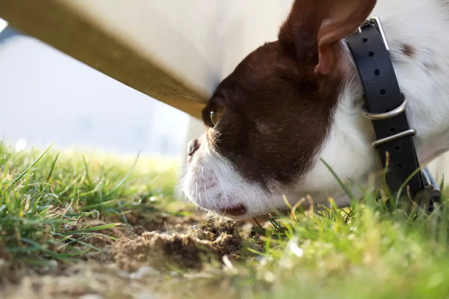 Dogs, particularly terriers and Dachshunds, like to hunt insects and other prey. You may want to try to rid your garden of these creatures but take care as some chemical-based products can be toxic and harmful to your pet. Other animals, such as rats and squirrels leave scent trails behind that can attract your dog and cause them to dig in that area. The smell of a female dog could also attract your dog.